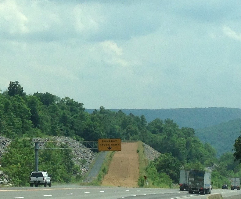 But then, we got to the top of the hill and now it is a four lane highway…BUT and also 6% grades…AND runaway truck ramps, three of them! This is not good for Bill….and it’s back to white knuckles.