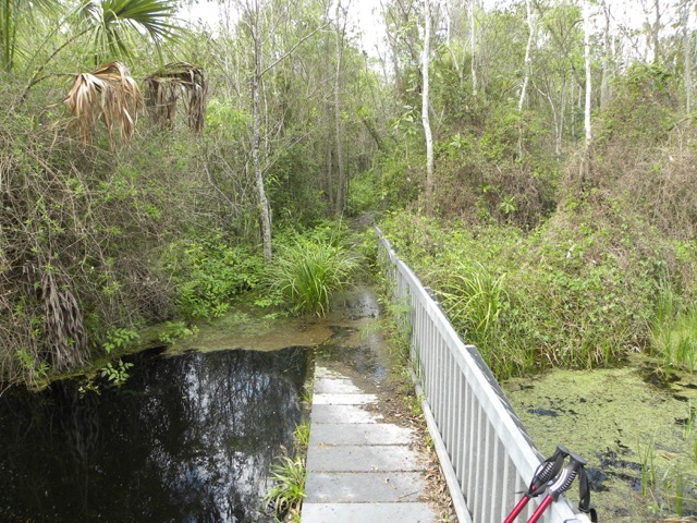 Uh oh. The trail comes to an end here! Bill tried to see how deep it was. He put his poles down as far as he could and never hit bottom, so over four feet.