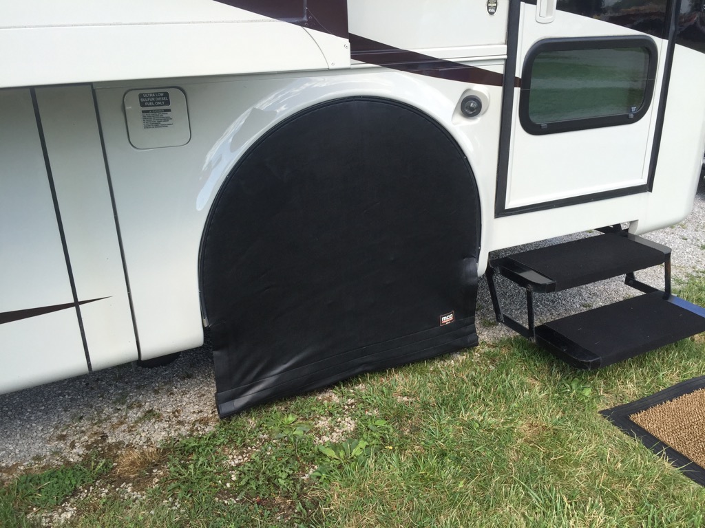 This wheel was the one that blew out and not only did a lot of body damage, but it blew off the Glide Trac to hold the wheel cover. Bill installed it. I guess I should have taken photos of his handiwork.