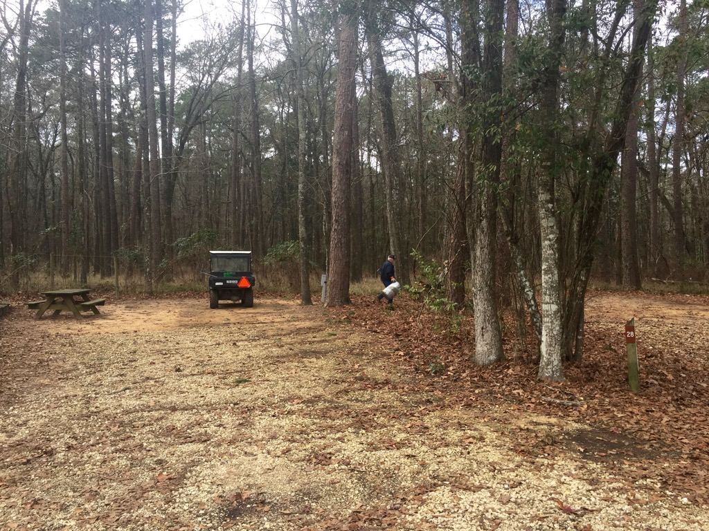 Camphost pulled into the empty site next to us to clean out our fire pit. Someone soon moved in here!