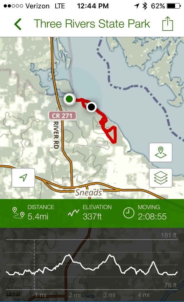 Day one, our arrival. Not a bad hike after our drive here. You can see the terrain is a bit hilly, which is always good in Florida if you want a good workout.