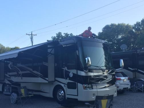 6. As mentioned, Bill likes every thing to work whether we need it or not. We have an unnecessary spotlight on our roof – Tiffin no longer installs them on their motor homes. You just never know when you might want a spot light, so why not figure out why it wasn’t working. He hoped it was just the bulb but of course there is nothing so simple. Thankfully, after a lot of hard work and patience, he only needed to replace the bulb which is the Guest brand as well as changed the in-line fuse under the steering wheel in the cockpit area. We actually could have used it once when a neighbor arrived after dark and it was VERY dark. Otherwise, I think when our grandsons are a bit older, they will love turning it on and off….it’s in the “cockpit” area and they are forbidden from entering it since they only have to hit one button which releases the brakes and could mean a disaster!