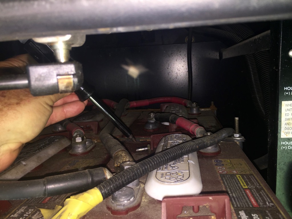 When Bill opened up the slide drawer with the batteries, he saw the one little shiny shear pin. He’s pointing to it.