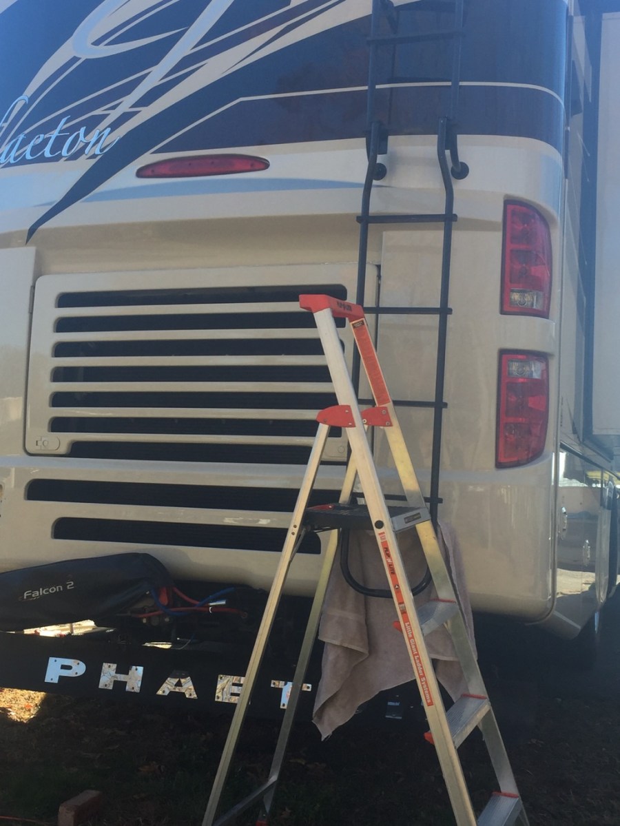 This is our 7 foot ladder we bought for the 5th wheel. It has come in handy for him to get up on the roof.
