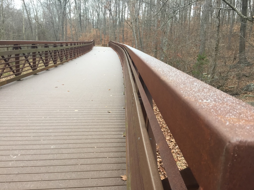 Snow dusting on the Central Virginia Railway trail on December 15, 2017.