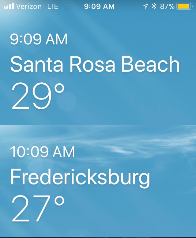Putting our winter in perspective. We fled Fredericksburg on December 26, 2017. The cold seems to have followed us!