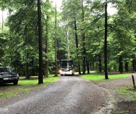 Clarion is the county seat of Clarion County and is home to Clarion University of Pennsylvania. We enjoy small college towns and always hope to catch a good play. We didn’t get a chance to see if anything was playing while here. I guess I should mention a downside to the CSF is the lack of cell phone connectivity! I meant to do some research while in town, but we were busy dodging the heavy rain and grocery shopping. We made a wrong turn, so we were able to see the college campus and it did look like it was closed for the summer! Or was it all the rain? Which stopped as soon as we retuned to the campground. And so it was time to change sites: