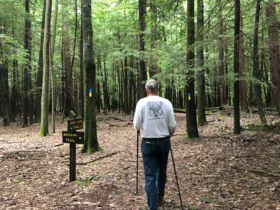 Tuesday, June 12, 2018 we decided to hike on the trails in the Forest Cathedral Natural Area. One negative about the trail map is how obscure it is to find the trailheads. We could tell it was close to the State Park Office. So we asked and sure enough, they said park there and walk a few 100 feet to it. Later we learned, this was the steepest climb up to the Area! But we are glad we took this route up.