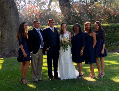 And here is my nephew and his fabulous family with the newest member of the family. Missing is son-in-law who also served as a groomsman. I think the groomsmen were off into some mischief. I’m sad I don’t have a picture of him included.