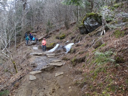 The ice is melting and leaving a muddy and slippery trail in spots.