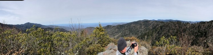 My attempt at a panaromic view. Bill tried to take a video scanning the views but it didn’t turn out (whited out). We are supposed to be seeing Tennessee and North Carolina from here. We regret not saving one of the compasses for hikes like this.