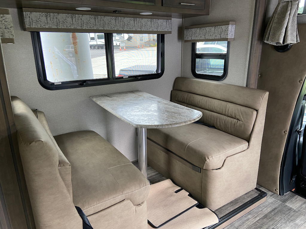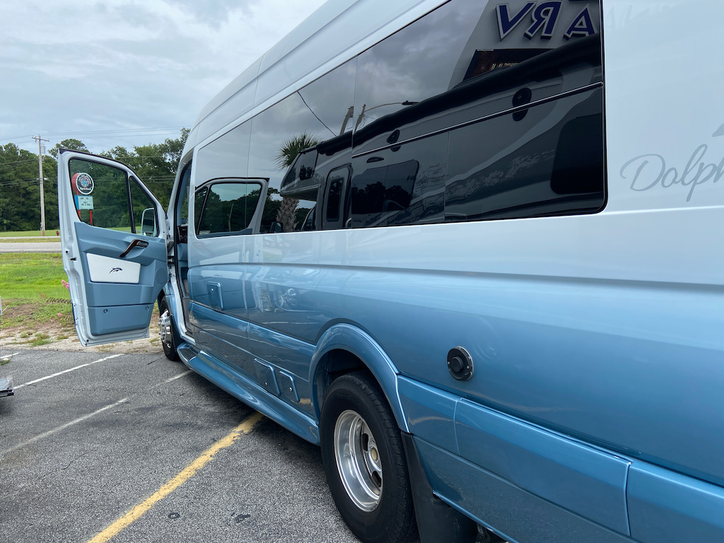 We started this journey thinking we would prefer a Mercedes Benz Sprinter. We had actually met a couple while traveling full time that had the Class C Tiffin Mercedes Benz Sprinter. They raved about it. But we have since been counseled against it as an option for us at this time. But it was informative to look inside.