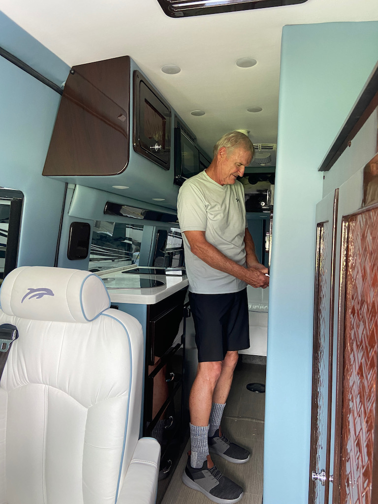 Bill wanted to look inside the bathroom in the Dolphin.