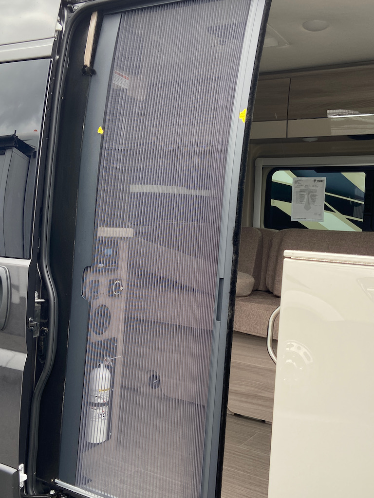 2022 Thor Sequence side entrance screen. Nice feature. The Travato also has a screen.