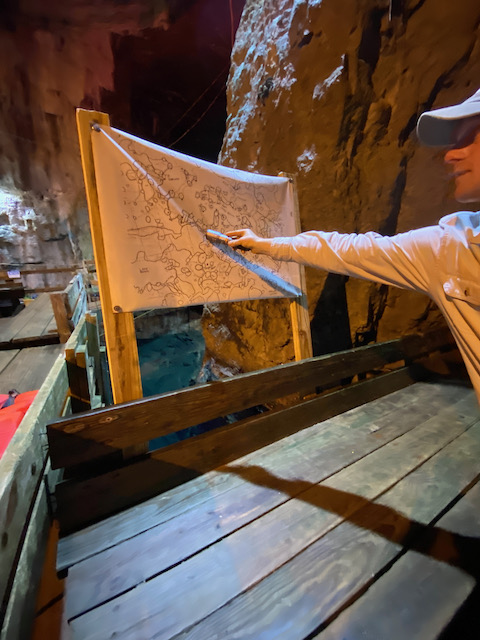 I looked closer at the website and saw a video that let me know we didn’t have to be divers! They had both a walking tour and boat tour of this incredible mine: “Worlds Largest Subterranean Lake! A guided tour by boat, of the Billion Gallon Lake with its crystal clear water, and spectacular view of the largest parts of the mine. See the No. 1 Elevator, Submerged Ore Carts, Wrapped Pillars, and Ancient Abandoned Overhead Wooden Cat Walks suspended 50-100 feet above the lake.” (also from the above website.)