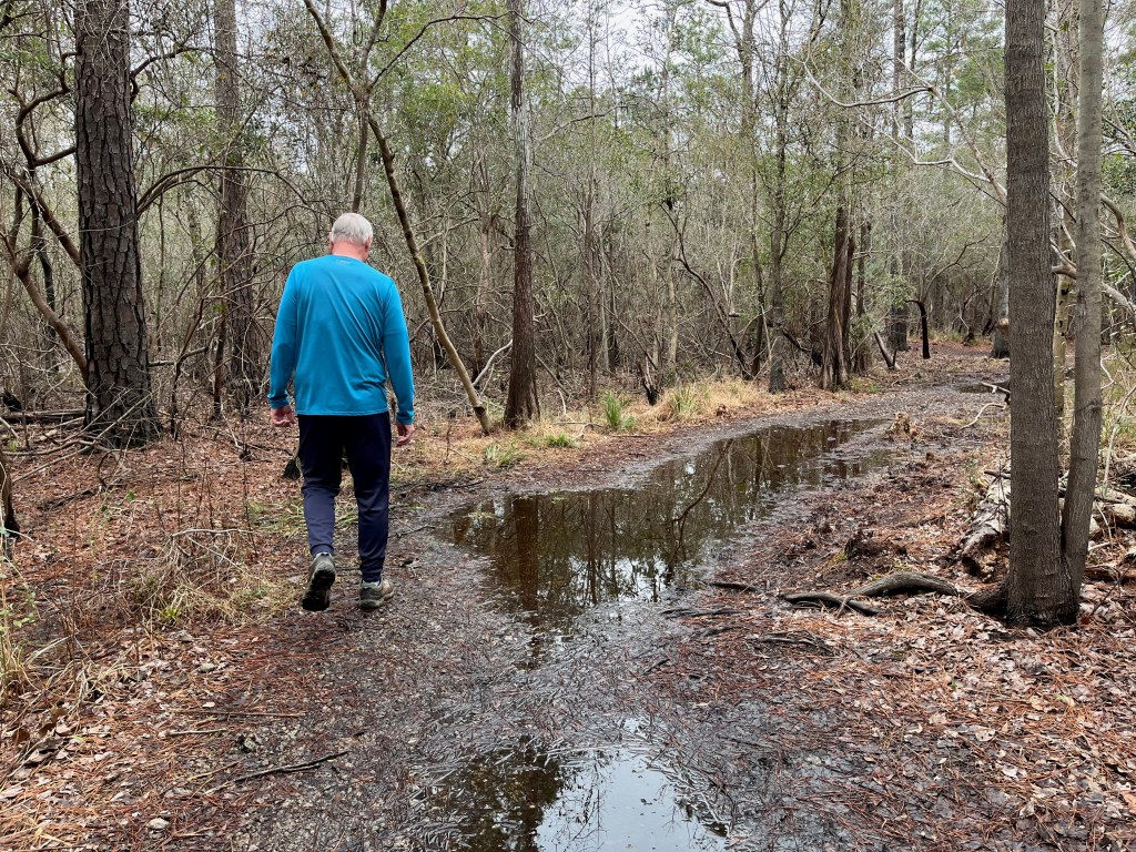 Review posted on All-Trails which asked, “How was the trail?” We gave it five stars: fabulous! Only a few wet spots and slightly slippery boardwalk. We saw nine dogs and approximately 15 people. No other wildlife.The trails were clearly marked.” Perhaps there was no other wildlife because there were so many people and dogs. The good news is we did not feel “crowded” as you will note nobody else was in our pictures.