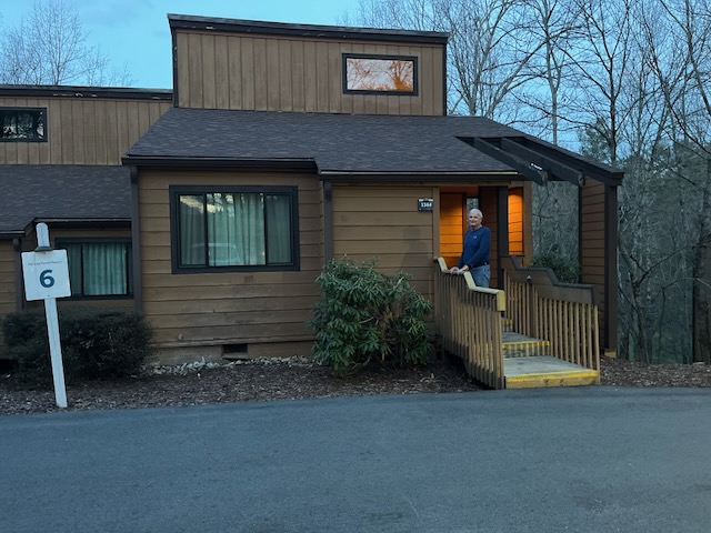 First stop in our celebration was a week in Sapphire Valley, NC. 4/4-11/2025. Less than six hours from our home in Myrtle Beach makes it our closest and the BEST place to hike! Our condo was newly remodeled so was a wonderful blessing as we made it our “home” for a week. We took a short walk, but steep decline and incline back up after a little over a six hour drive. We relived all of our previous hikes so tried to figure out where to go to hike. Bill had been putting in a lot of hours and manual labor changing our kitchen cabinets (we have lots) to white. And Debbie, me, has been enduring some muscle-skeletal issues. Here is a photo of Bill outside our cabin/condo. And then a surprise waiting for us to honor our 50th Anniversary! So sweet!