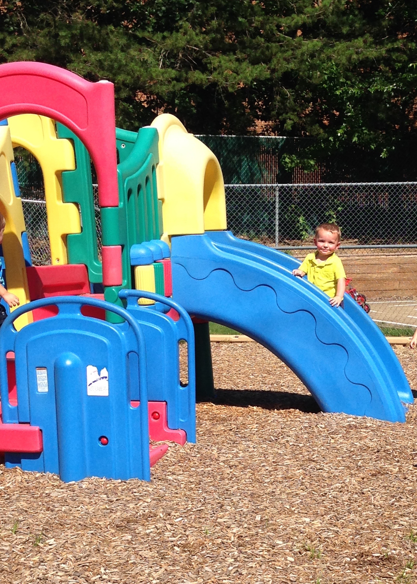 Normally, he comes running when we pick him up from day care. This day, he wanted to keep climbing!